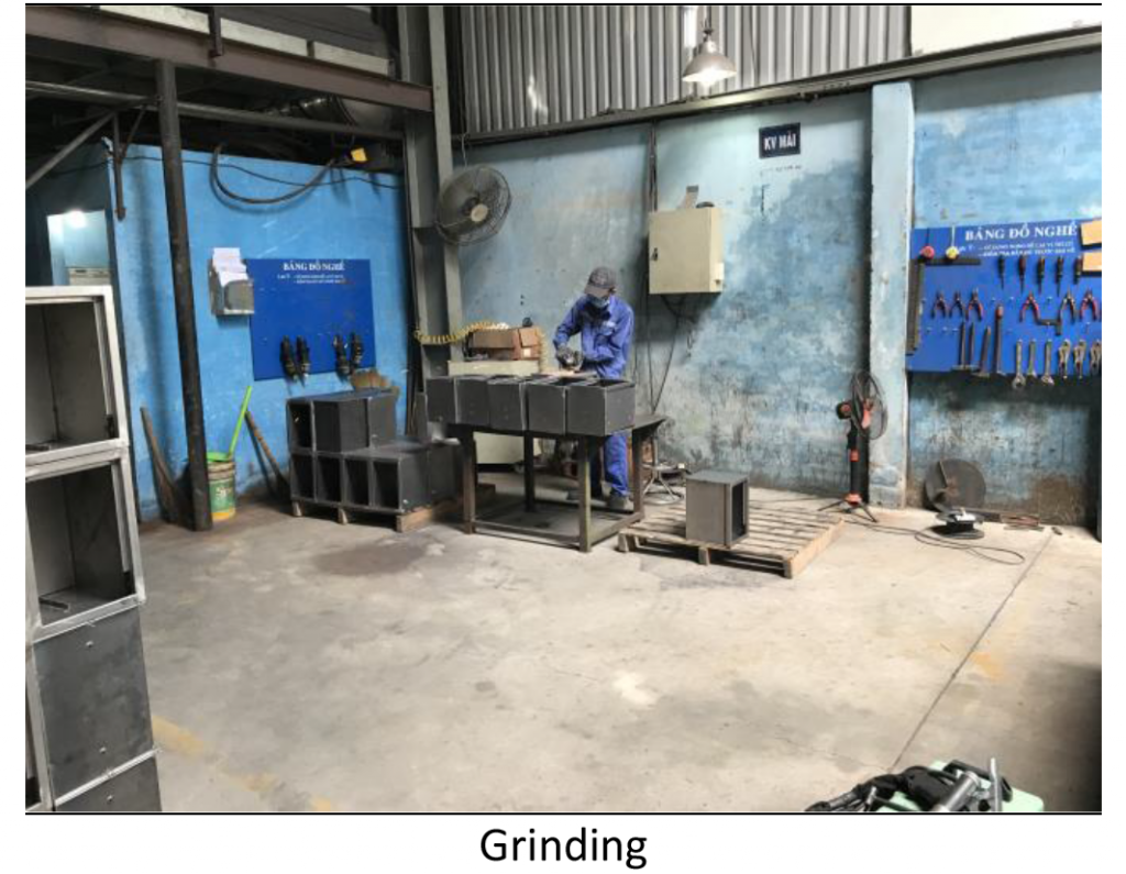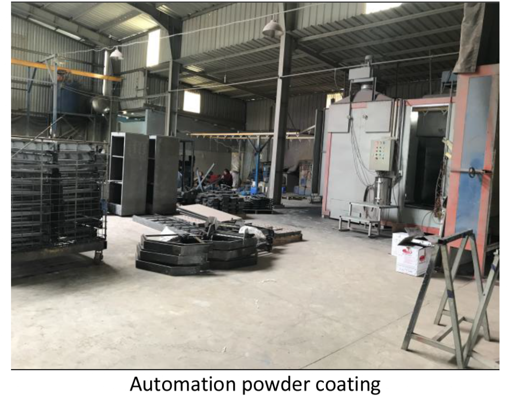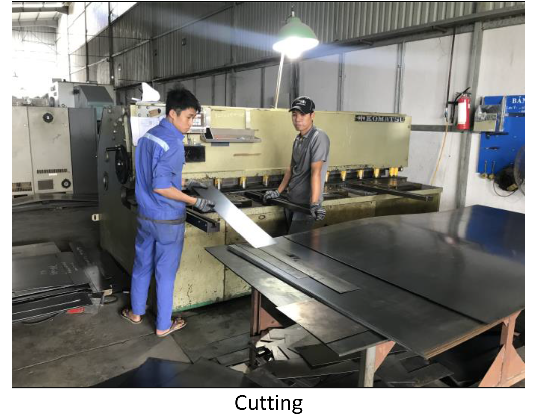 ➔ Sản phẩm được thực hiện khép kín từ gia công cơ khí: Cắt/ Đột/ Chấn/ Hàn/ Mài cho đến hoàn thiện thông qua dây chuyền sơn tĩnh điện.